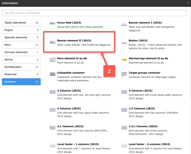 2. Select Banner element II (2015) under the Container tab.