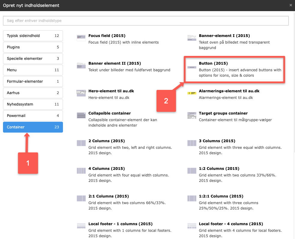 For example, green is typically used to indicate studerende.au.dk, as it represents AU's green universe. Cyan-colored buttons signal medarbejdere.au.dk, as that univers uses this color, while phd.au.dk is purple. On externally facing pages — such as– au.dk, external institute pages, etc. — dark blue and gray are often used, while the Gymnasieportalen uses yellow and brown, etc.