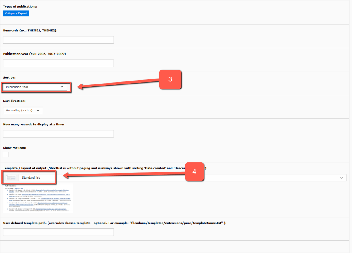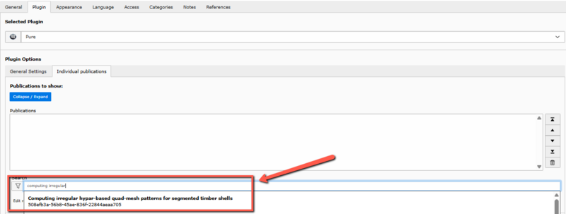 1) Under the 'Plugin' tab, select 'Publication list' (instead of 'Employee list'). Wait for a new 'Publication list' tab to appear to the right of the 'General settings' tab. It may take a few seconds. Click on the new tab.