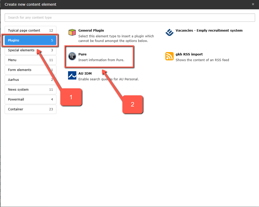 With PURE plugins, you can get a neat overview of a department's, center's, or project's employees and publications. You can also display a page's contact person as a business card. The advantage of using PURE plugins is that the information is automatically updated when a researcher publishes a new paper, or if an employee moves, changes phone number, or office. See examples of PURE plugins on the page View all content elements