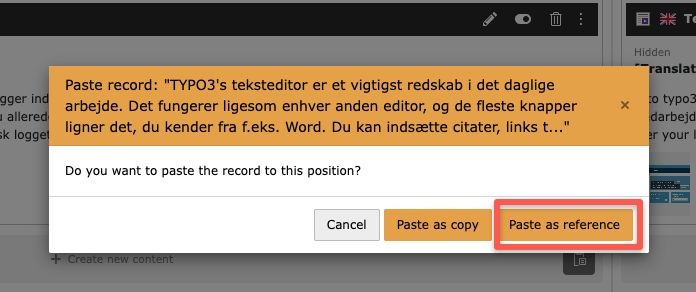 If you want to reference all content elements from another page on your page, you can use the 'Replace content' function. This will display all content from the page you want to reference, regardless of how many elements that page is made up of. The only thing you can choose to differ from the original is the page title. The content that is already on your page will also disappear, but will reappear if you remove the reference. Consider whether having the same content on multiple pages makes sense in terms of search optimization.