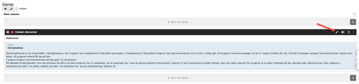 1) Click on the page where the content element to be inherited is located. Find the correct content element and click the pencil icon to edit it.