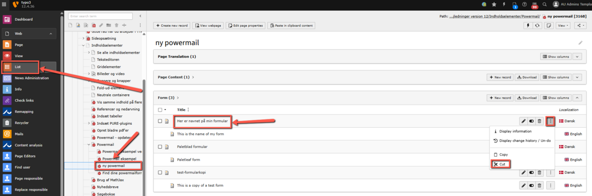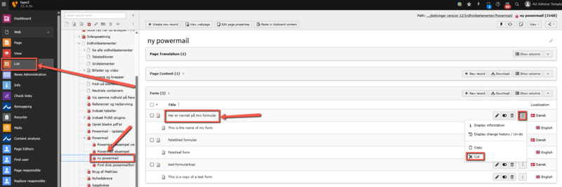 Also, remember to move the Powermail plugin itself to the page where you are placing the form. You can do this either before or after moving the form (steps 1-4), in either Page or List view.