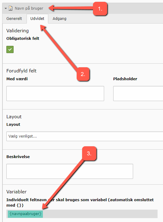Under each field in the 'Advanced' tab, you have the option to make additional settings for the field: