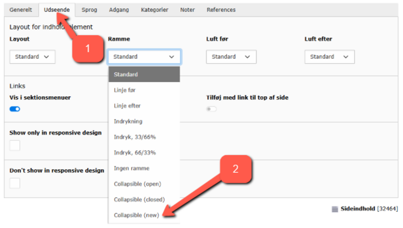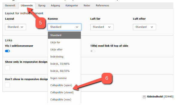 Man kan selv vælge, om elementet som standard skal være foldet ud eller foldet ind.
