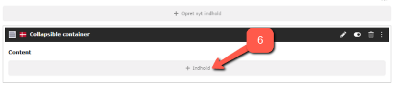 1. Opret et nyt element på din side ved at trykke på ikonet + Opret nyt indhold.