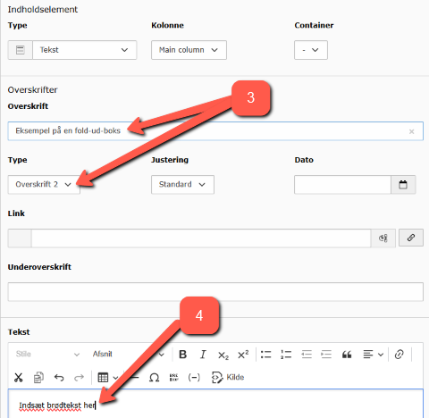 4. Indsæt indhold i tekstfeltet.
