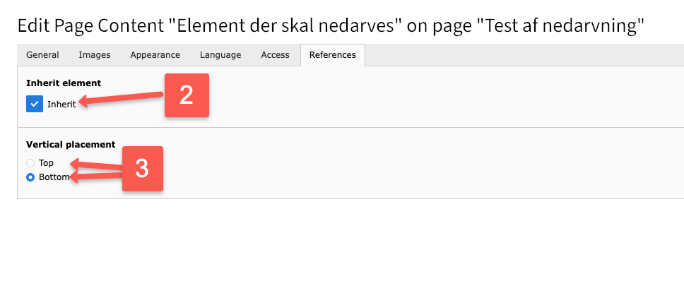 2) Under fanebladet References sætter du flueben ved Inherit element for at slå nedarvingen til.