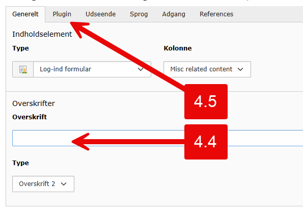 4.4 Giv login-elementet en passende overskrift (evt. skjult) i fanebladet Generelt.