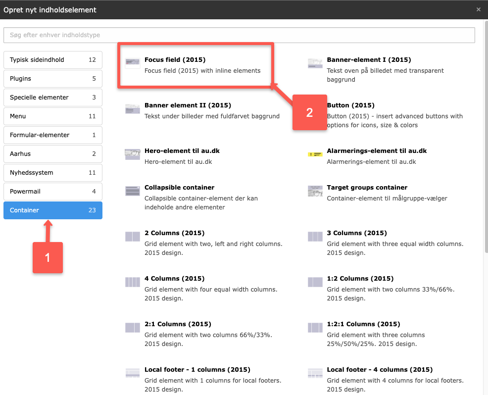 1. Det er en rigtig god ide at give fokusfeltet en overskrift (selvom den ikke bliver vist i frontend), da det kan gøre det meget nemmere at skelne dette fokusfelt fra andre sideelementer